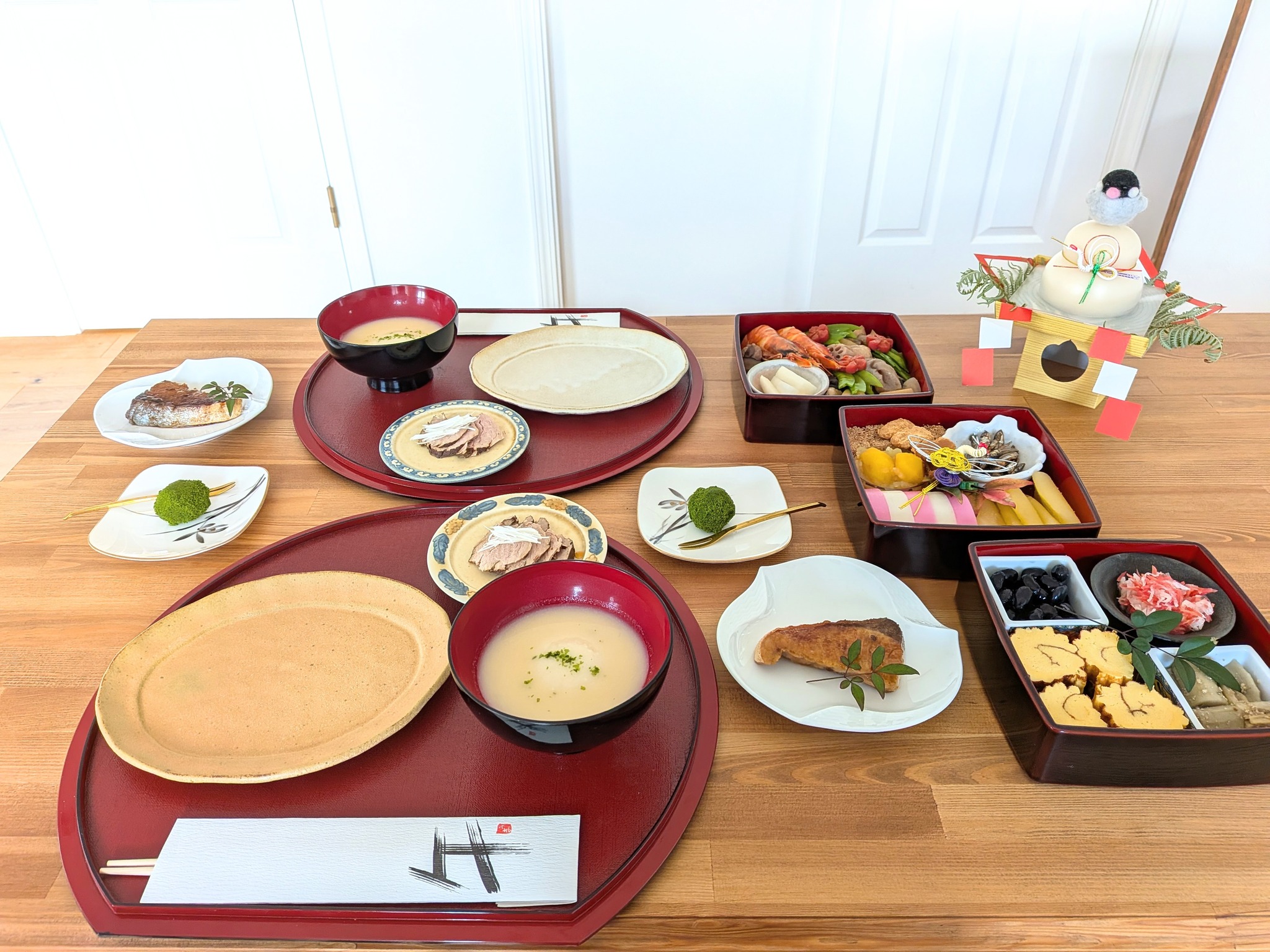 10年以上前に百貨店で見つけたもので、漆のお重は当時の私たちには少し高価な買い物でしたが「末永く一緒に年を重ねていけるように」と願いを込めて選んだものです。