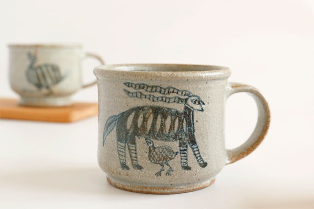 民族模様のマグカップ 生きもの1(アフリカ セヌフォ族)陶器 OKAMA Studio 岡安まりな