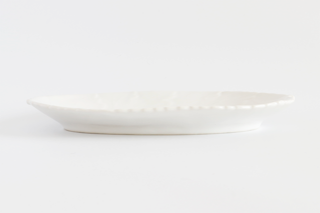 澄み切った白が美しい、葉っぱを重ねたようなウェーブデザインのお皿です。