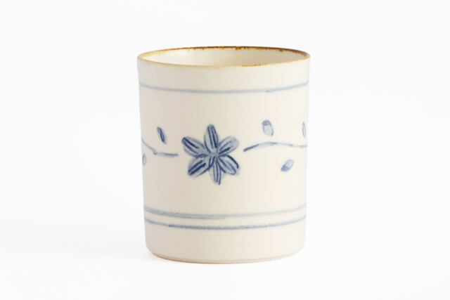 まるで知らない国の蚤の市で出会ったようなどこか懐かしく温かみのある雰囲気が魅力のそば猪口。作家さんが「知らない国の蚤の市で出会ったような器」をイメージしてつくられた異国情緒漂う一品です。安南手(あんなんで)はベトナム由来の技法で、じんわりとにじむ青い線が特徴。手描きで描かれた草花の模様は素朴で優しい表情を見せてくれます。