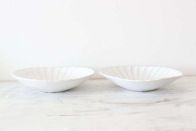 花びらの形がフリルのようで盛り付けたお料理を華やかに引き立ててくれます。