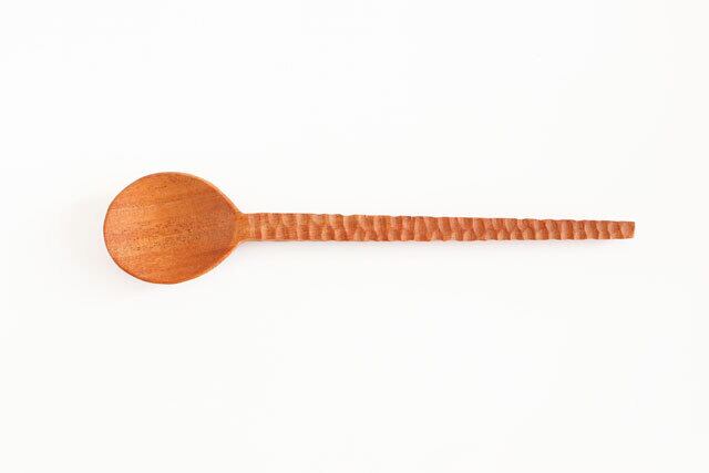 持ち手の彫り模様が可愛らしく見た目だけでなく手にしっくりなじむ心地よさがあります。
