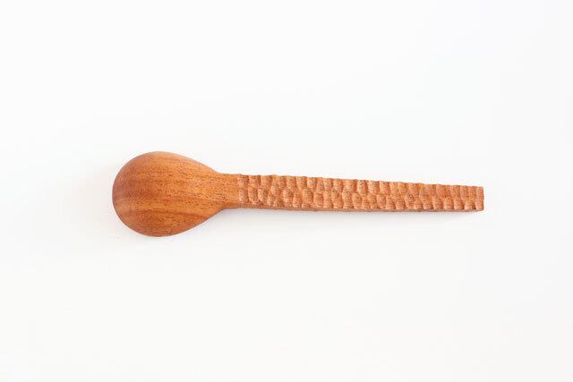 スプーンの部分は深めに、柄の部分は太目に且つ角度をつけたれんげ風のデザイン。