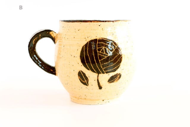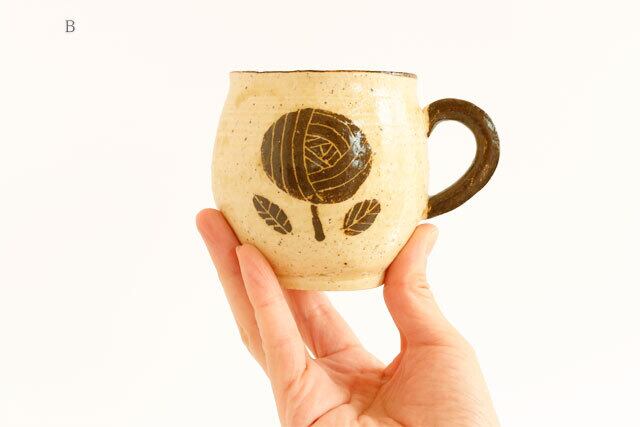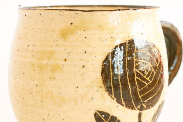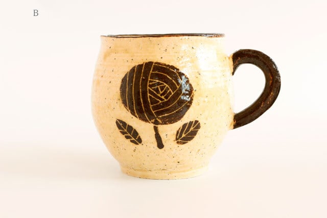 カップの表と裏に同じお花が描かれた「マグカップB」。