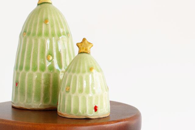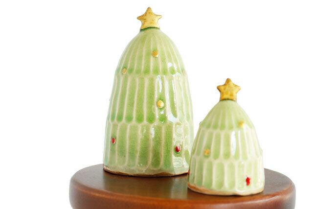 陶器のやさしいツヤ感が魅力の小さなツリー。