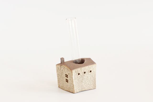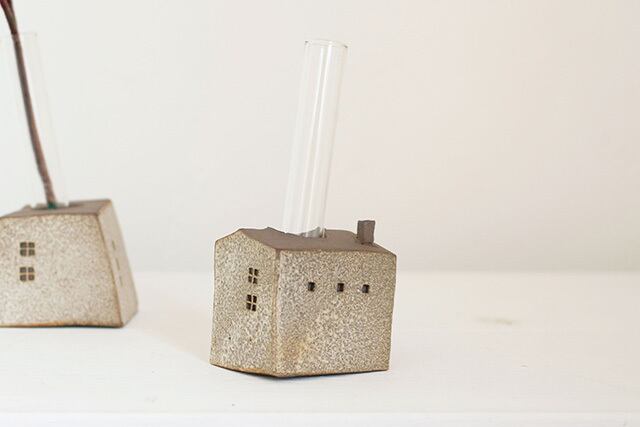 ハウス一輪挿し試験管B(えんとつあり) 陶土 ニシクミ