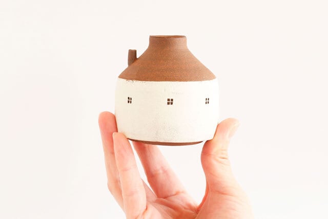 ナチュラルなインテリアにすっと馴染む家のかたちをした可愛らしい花器。