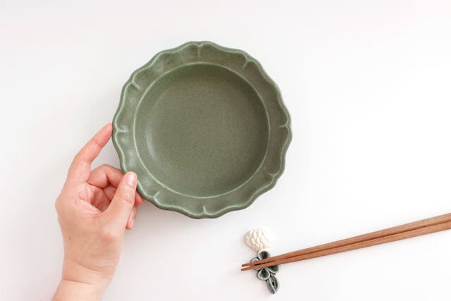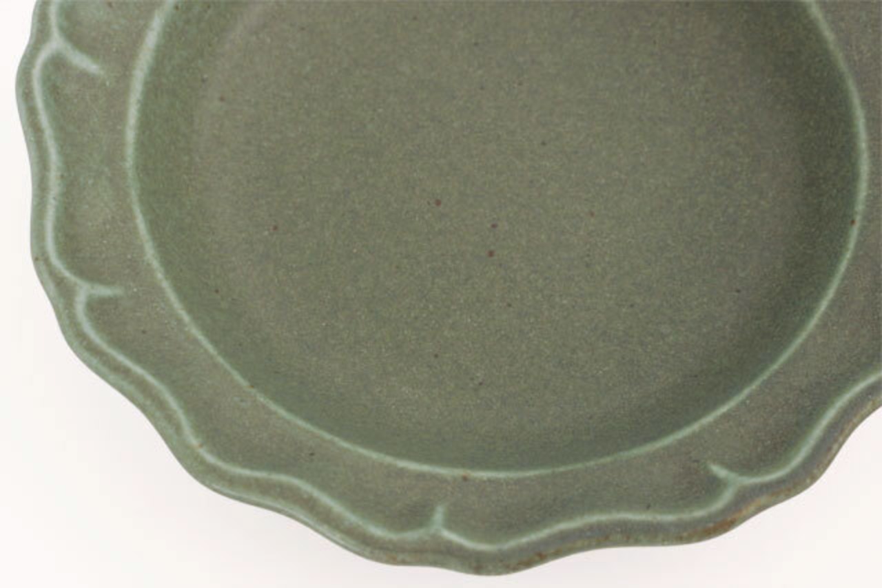 ひらひらと波打つようなリムが印象的でテーブルの上でそっと華やぎを添えてくれます。