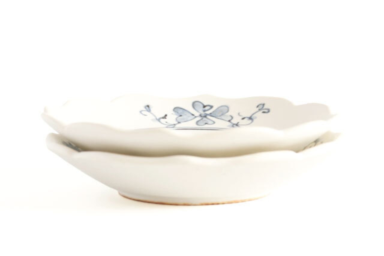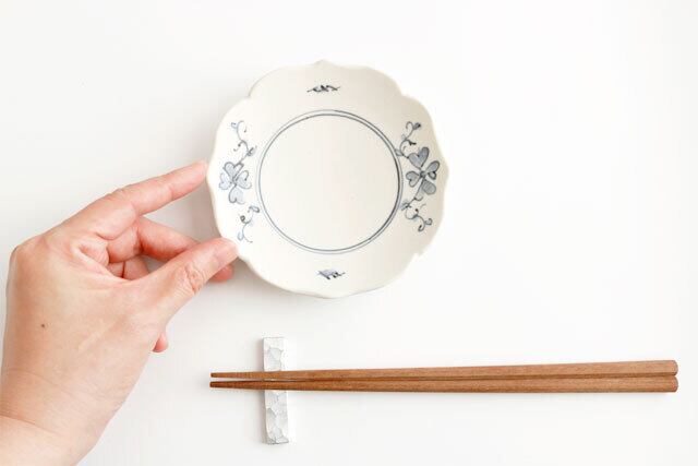 可憐な輪花のフォルムと繊細な絵付けが目を引く作家もののお皿です。
