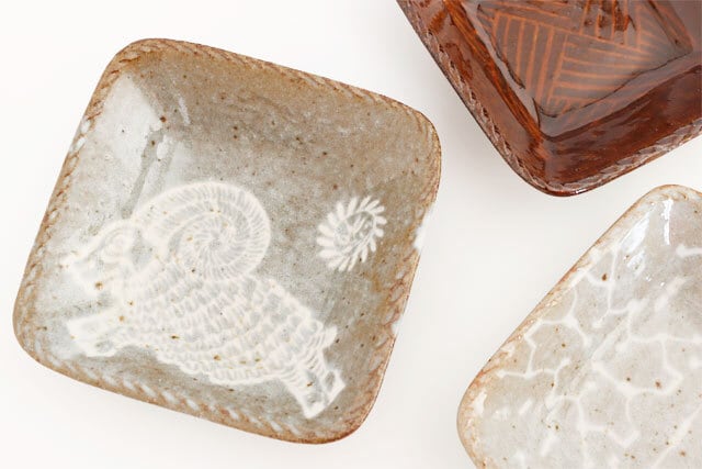 モチーフは、その土地の歴史や技術が刻まれた染め・織物・刺繍などの美しい手仕事。一見、ユニークなデザインですが、実際に使ってみると驚くほど現代の食卓にスッと馴染む絶妙なバランスの作家もの陶器です。