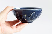 ◆夜空を羽ばたく鳥と星が描かれた藍色のお茶碗