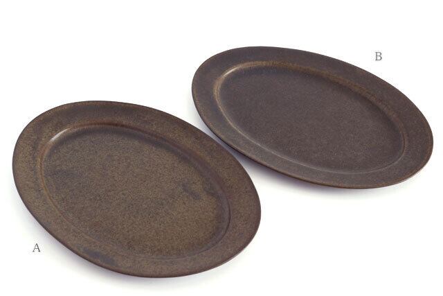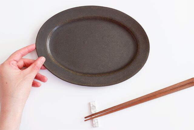 リムオーバル皿 黒茶 陶器 きほんの道具 あべ