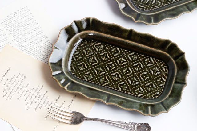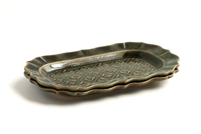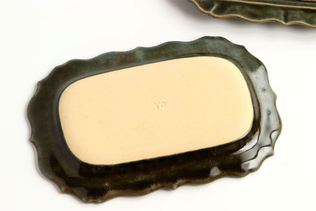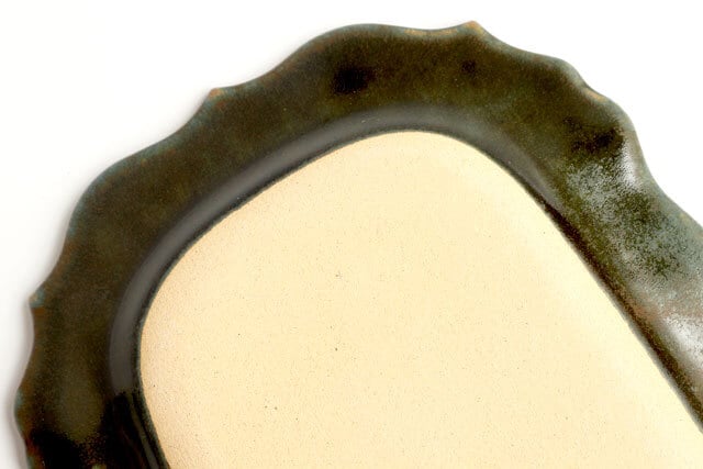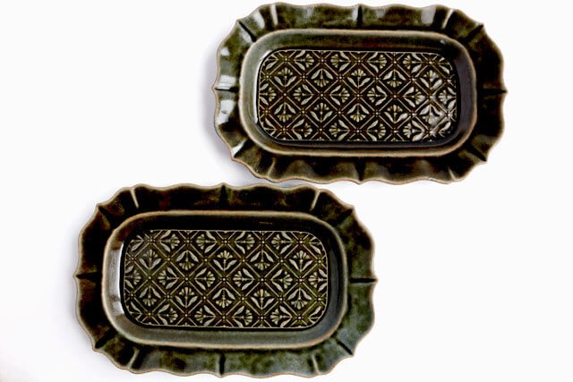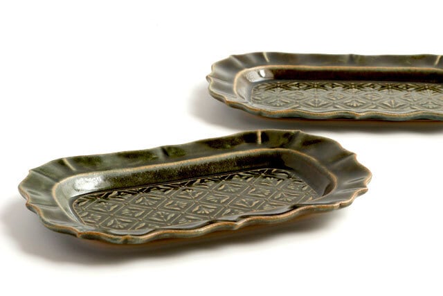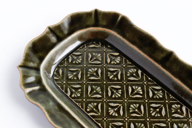 ベルベットグリーン 稜花長方皿 classic flower pattern 陶器 よしざわ窯 益子