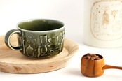 ベルベットグリーン 珈琲道具の平マグ 磁器 よしざわ窯 益子