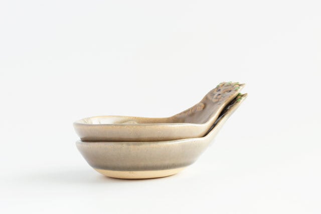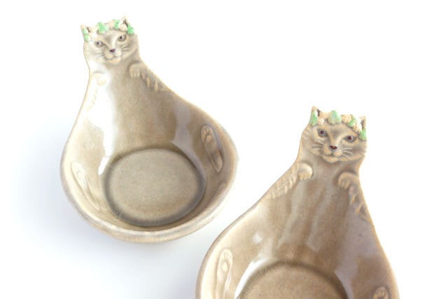 パールストーングレー 花冠をした猫のおしゃもじ皿(貫入/釉ヒビあり) 陶器 よしざわ窯