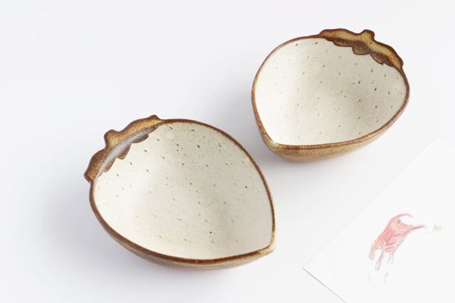 いちごをモチーフにつぶつぶの種やヘタまで表現された愛らしいデザインです。落ち着いた素朴な雰囲気なので、大人はもちろん、お子様用のうつわとしても親しみやすく家族みんなでお使いいただけます。